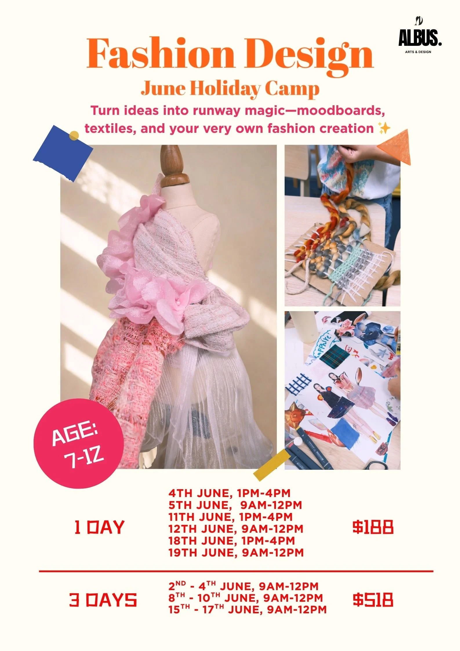 This program nurtures young minds through hands-on exploration across Art or Fashion classes, through a variety of materials, themes, and techniques.
