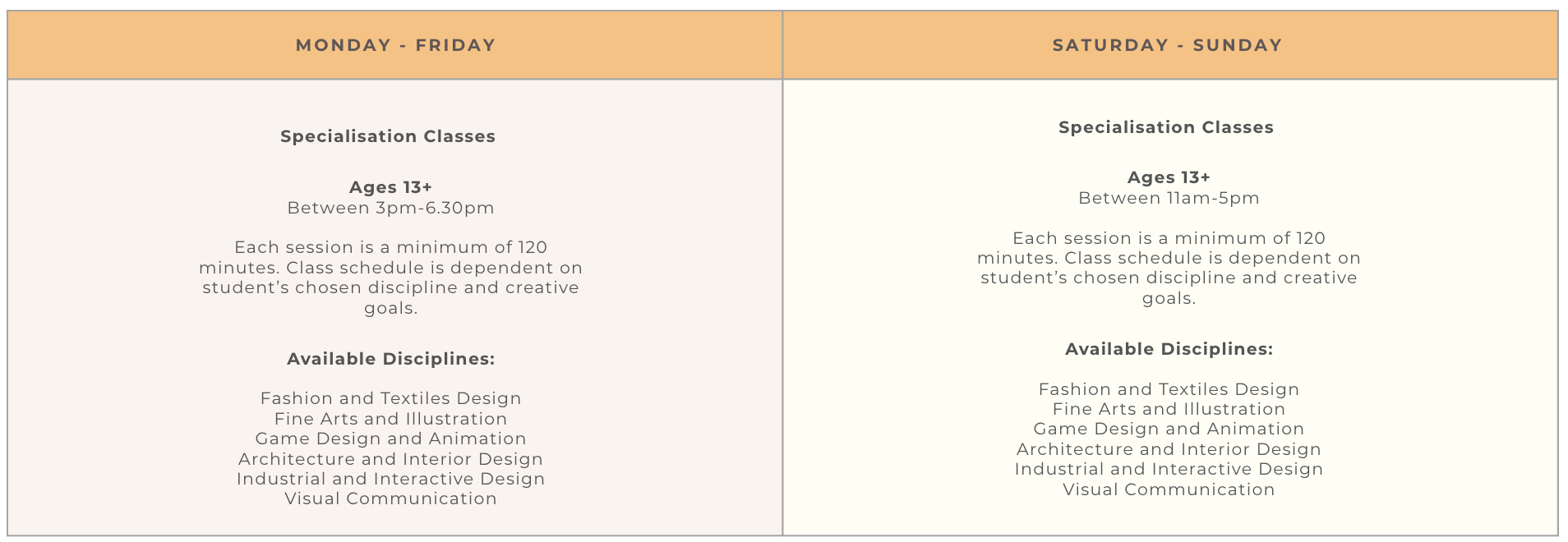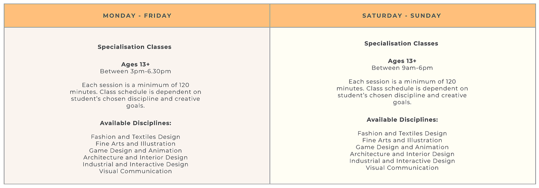 All classes are taught by trained art educators or industry practitioners, with a strong foundation in their design specialisation.